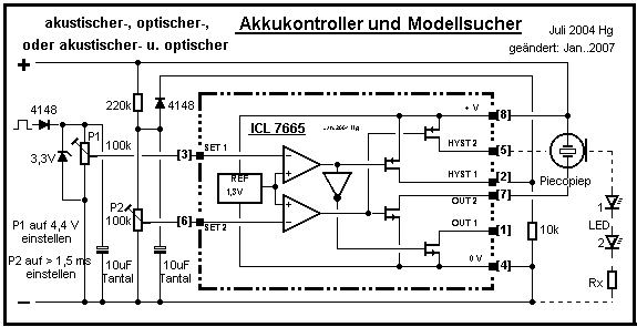 Auch kann mit der Potieinstellung (Spannungsteiler) der Alarmeinsatz